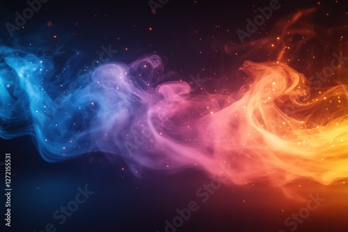 Brightly colored abstract smoke dances through a dark background creating vibrant visual effects