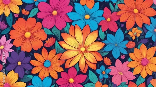 Brightly Colored Flowers in Full Bloom Cartoon Background Design
