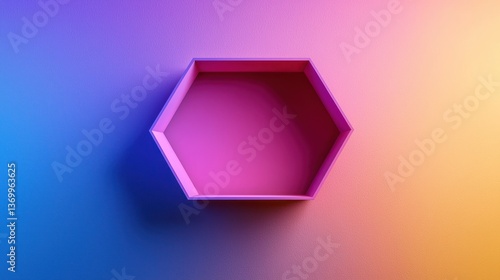 Brightly colored hexagonal shelf against a vibrant gradient background.