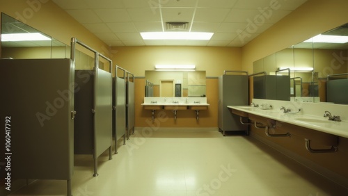 Brightly lit school restroom promoting hygiene.