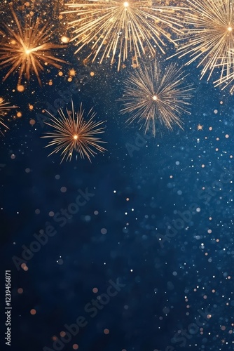 Brilliant Golden Fireworks on Night Sky Blurred Background.