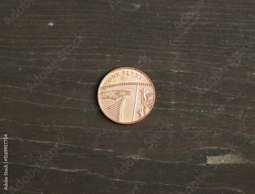 British change coin on wooden table
