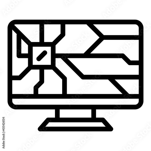 Broken display icon. Outline Broken display vector icon for web design isolated on white background