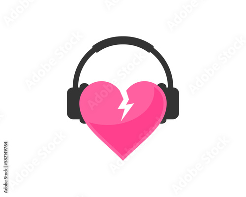 Broken heart with headphone illustration logo