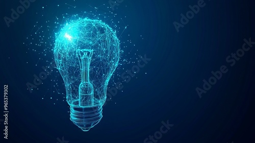 Broken Light Bulb. Blackout or burnout concept. Abstract digital technology illustration. Vector image in polygons, lines and shapes. Low Poly Wireframe 3D Vector illustration in blue