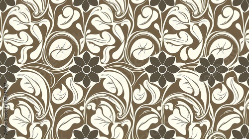 Brown and Ivory Floral Pattern: A seamless repeating pattern featuring delicate floral motifs in shades of brown and ivory. The intricate design creates a sense of elegance and sophistication.