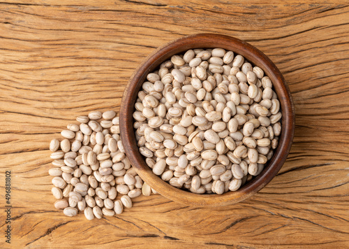 Brown beans on a bowl over wooden table