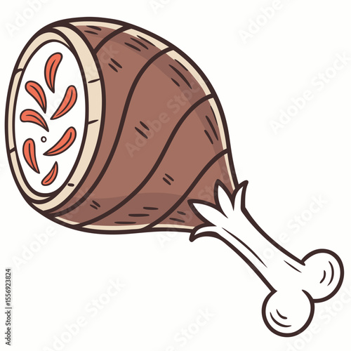 Brown chicken leg with orange slices and bone meat food