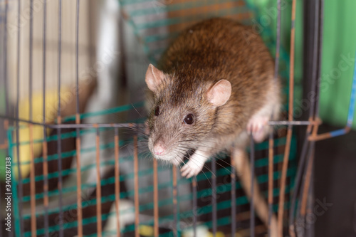 brown domestic rat in a cage