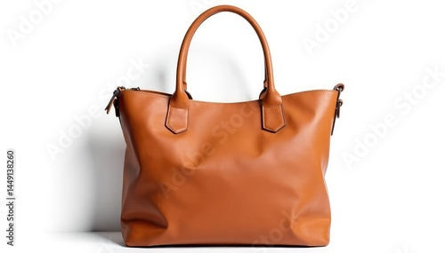 Brown leather tote bag, isolated on white background, isolated, handbag