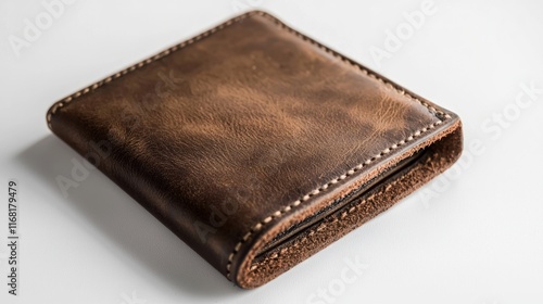 Brown Leather Wallet on White Background