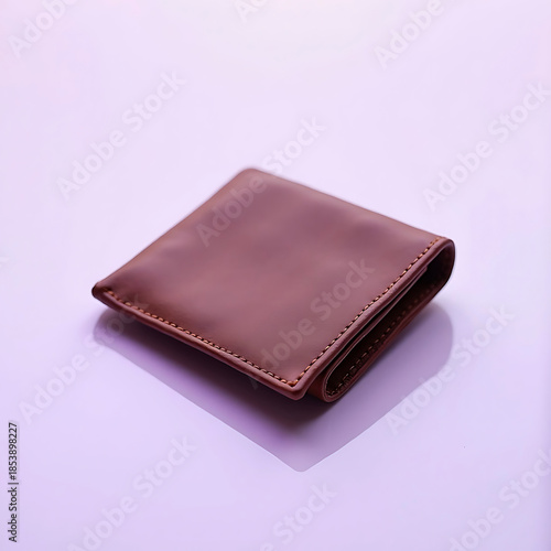 Brown leather wallet on white surface