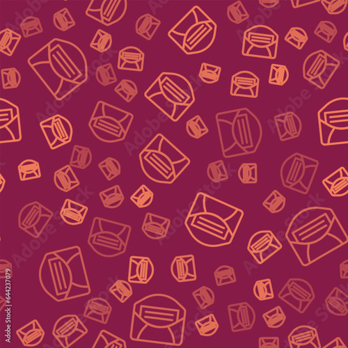 Brown line Mail and e-mail icon isolated seamless pattern on red background. Envelope symbol e-mail. Email message sign. Vector