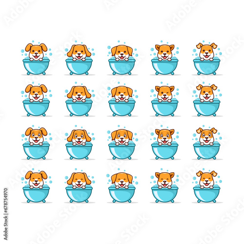 Brown Petwash Cute Dog Logo Icon Vector Design Template