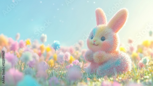BTC symbol turns into fluffy bunny in soft pastel setting