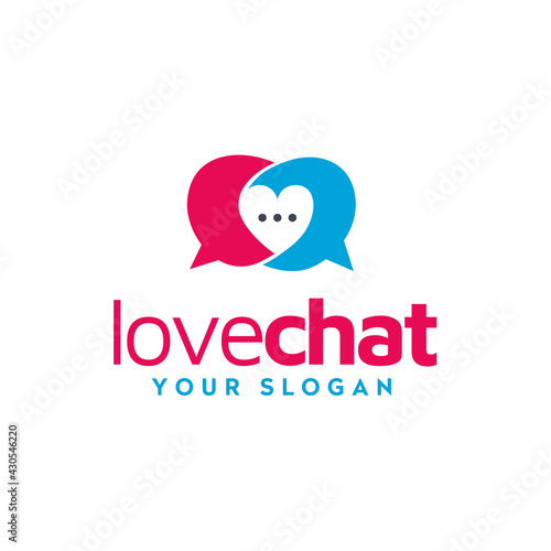 Bubble chat inbox message with heart love shape for valentine roman couple conversation logo design apps