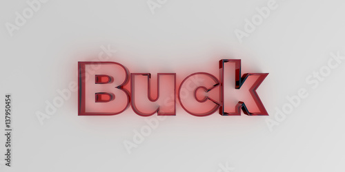 Buck - Red glass text on white background - 3D rendered royalty free stock image.