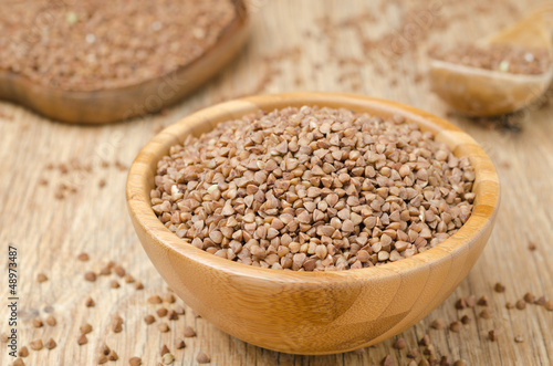 Buckwheat in a wooden bowl horizontal
