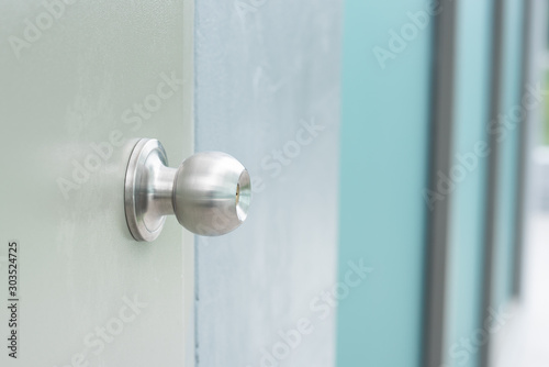 Building exterior stainless door knob.