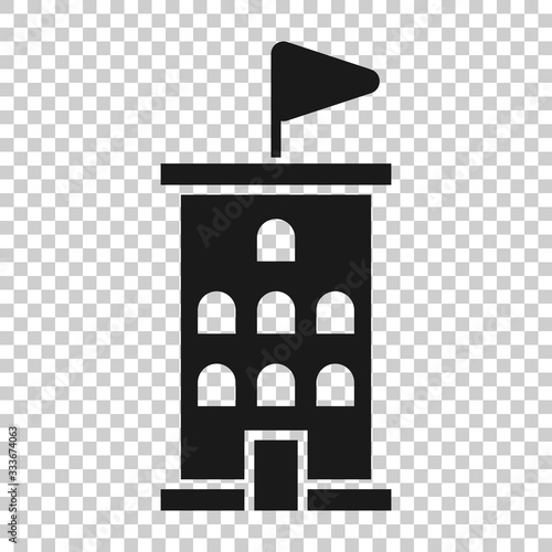 Building icon in flat style. Town skyscraper apartment vector illustration on white isolated background. City tower business concept.