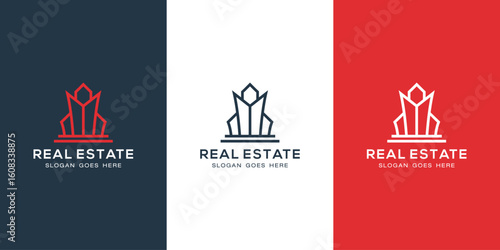 Building logo with line art style. city building abstract for logo design inspiration and business card design