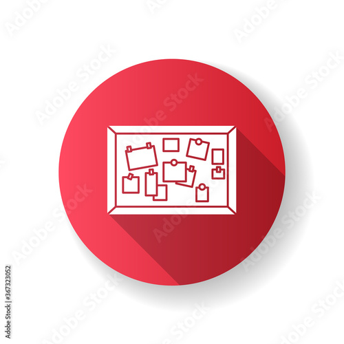 Bulletin board flat design long shadow glyph icon. Classroom corkboard. Notice board with notes. Announcements. University and college public messages. Silhouette RGB color illustration