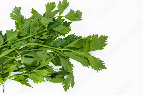 Bunch of Celery leaves on a white background