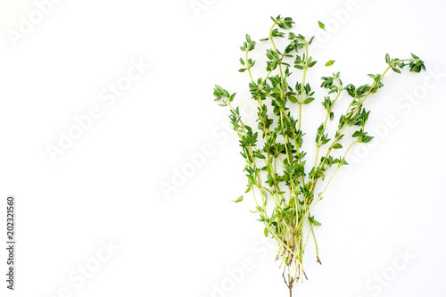 Bunch of fresh thyme on white background