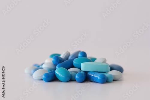 Bunching of blue medicines white background