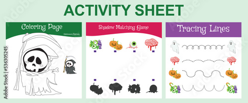 Bundle activity worksheet for toddlers with Halloween theme. Cute character printable worksheets Halloween edition.
