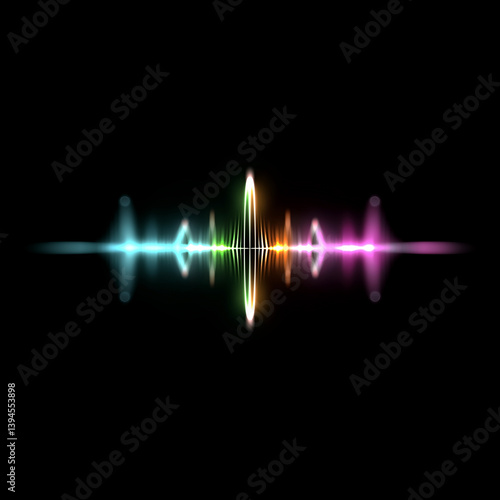 Bunte digitale Audiowelle auf schwarzem Hintergrund mit Regenbogenfarben