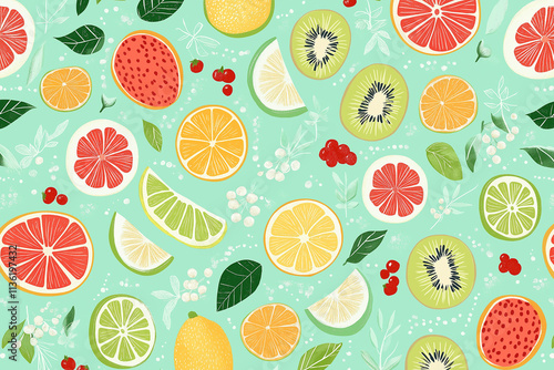 Bunte Fruchtillustration auf aquafarbenem Hintergrund