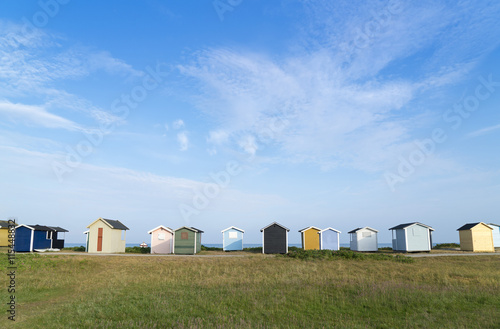 bunte Strandhütten in Südschweden