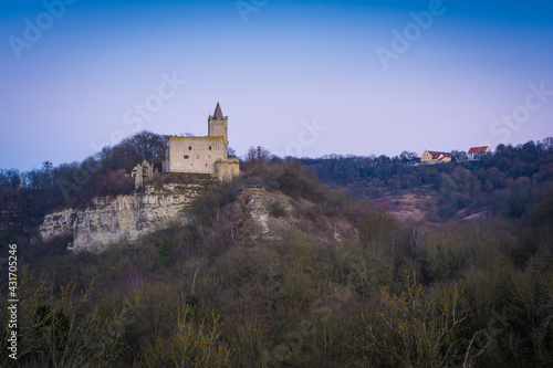 Burg Rudelsburg in Bad Kösen bei Naumburg am Abend