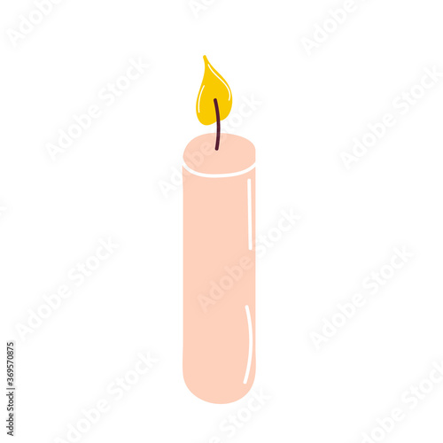 Burning candle for aromatherapy and interior decoration, isolated on a light background. Element for the design. Flat vector illustration