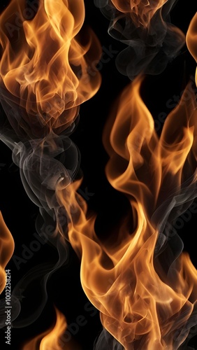 Burning orange flames leap and twist, casting a warm and flickering glow that contrasts beautifully with the black background.