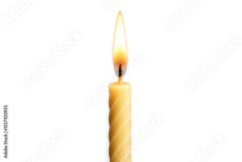 Burning spiral candle casting soft illumination, glowing against transparent backdrop with graceful, elegant ambiance