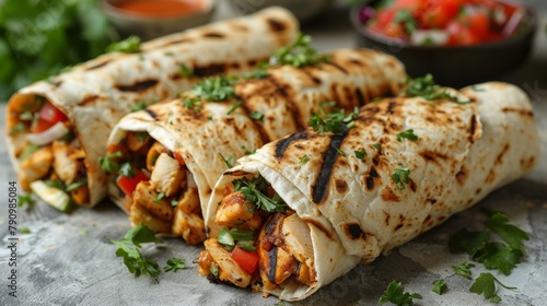 Burrito wraps with tender grilled chicken peeking over the edges