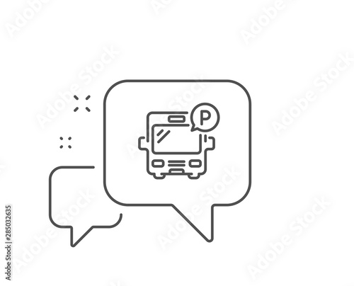 Bus parking line icon. Chat bubble design. Auto park sign. Transport place symbol. Outline concept. Thin line bus parking icon. Vector