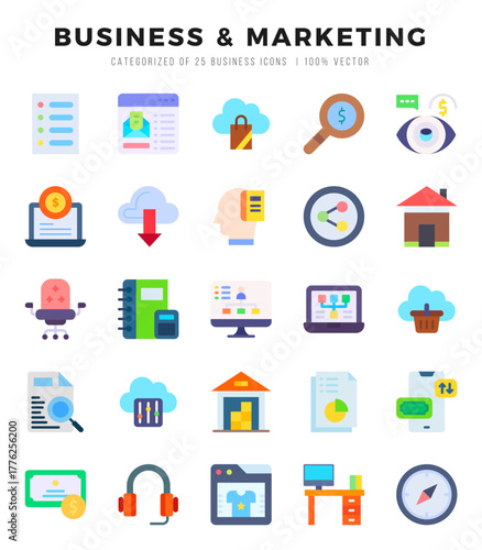 Business & Marketing elements. Flat web icon set. Simple vector illustration.