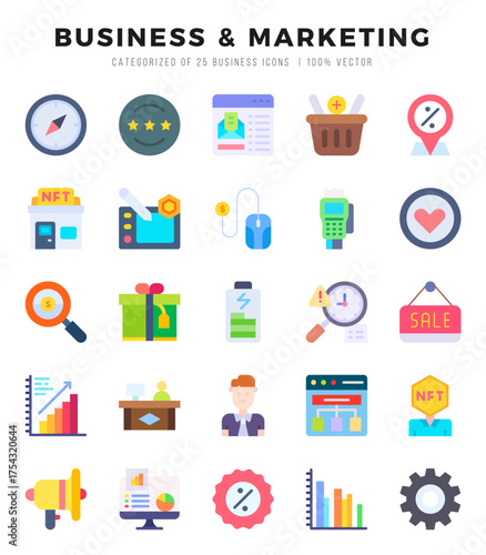 Business & Marketing Icons bundle. Flat style Icons. Vector illustration.