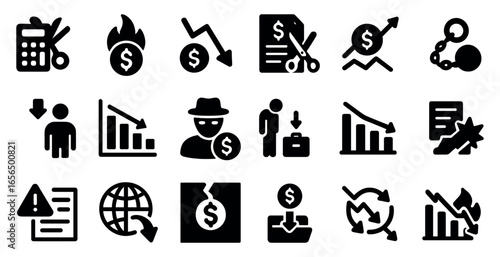 Business and finance icons set - solid, filled, economic and money symbols