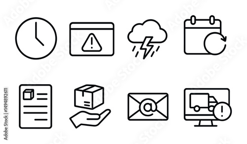 Business and office outline icons set – linear, silhouette, workplace symbols