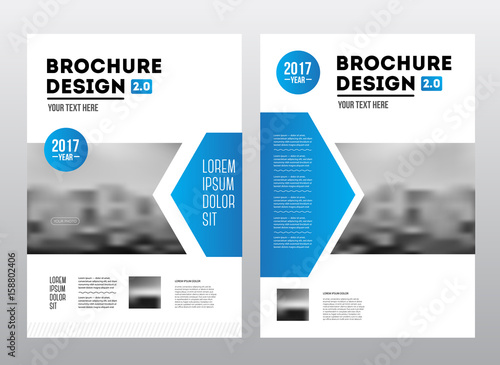 Business Brochure design. Annual report vector illustration template. Flyer corporate cover. Business presentation with photo and geometric graphic elements.
