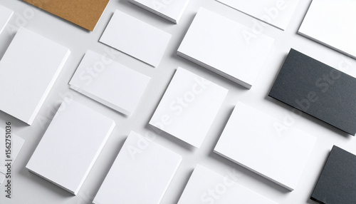 Business Cards Mockup Scattered on Clean White Background, Modern Branding Display