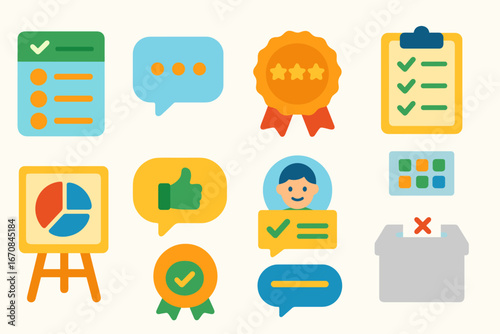 Business, communication flat icon set. charts, feedback, voting icons collection