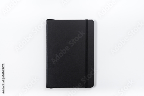 Business concept - Top view collection of black notebook on white background desk for mockup