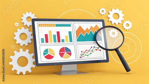 Business Dashboard and Data Analytics on Yellow Background