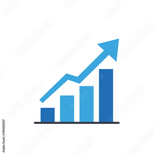 Business Growth Bar Chart with Upward Arrow Showing Positive Trend