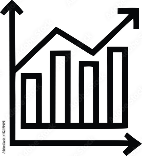 Business growth in the real estate market is symbolized by a house icon with an upward-trending business graph arrow